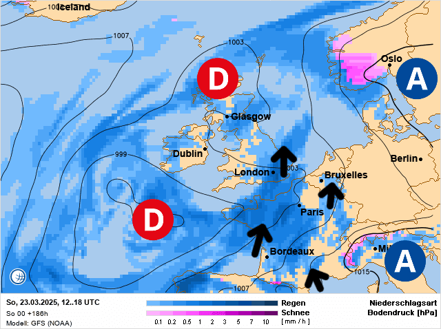 Prévisions à l'échelle européenne du dimanche 23 mars 2025 - GFS/NOAA / MeteoVilles