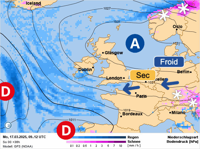 Prévisions à l'échelle européenne du lundi 17 mars 2025 - GFS/NOAA / MeteoVilles