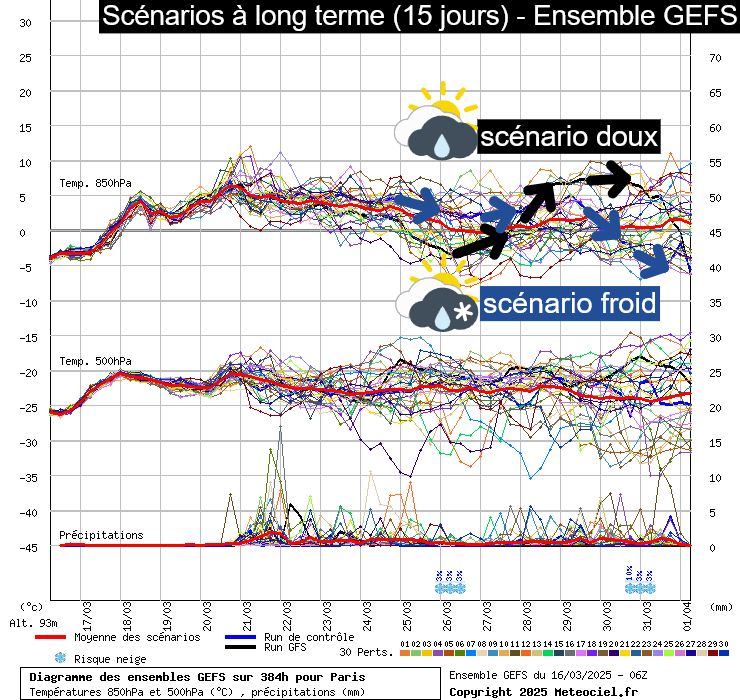 Ce scénario est toutefois à mettre en parallèle avec cette grande variabilité des températures. Si le temps devrait rester durablement perturbé, les températures sont très incertaines et varieront fortement d'un jour à l'autre.