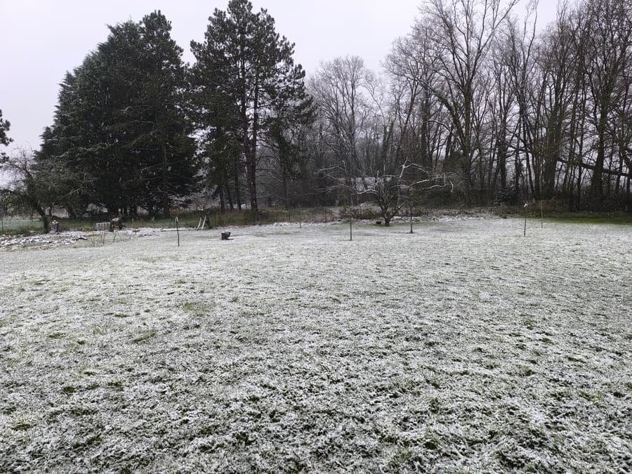 Neige tenant au sol à Availles (86) le matin du dimanche 16 mars 2025 - via infoclimat.fr