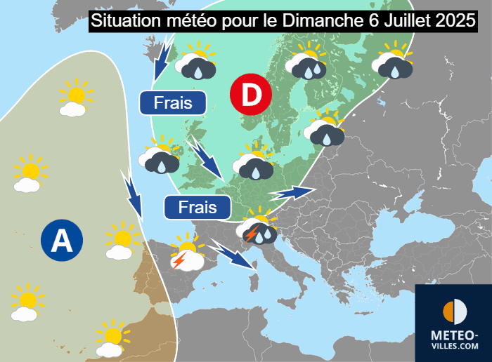 Situation météorologique en Europe pour le dimanche 6 juillet 2025 - Météo Villes