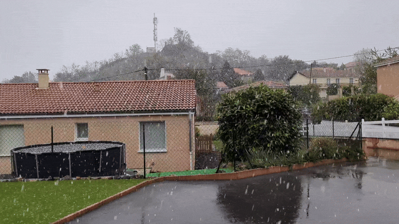 Neige à Vertaizon (63 - alt. 350m),  jeudi 18 avril 2024,  3 jours après un véritable coup de chaleur... - webcam skaping