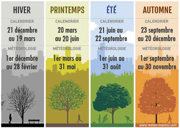 Différences de dates entre saisons météorologiques et saisons calendaires – via meteoexpress
