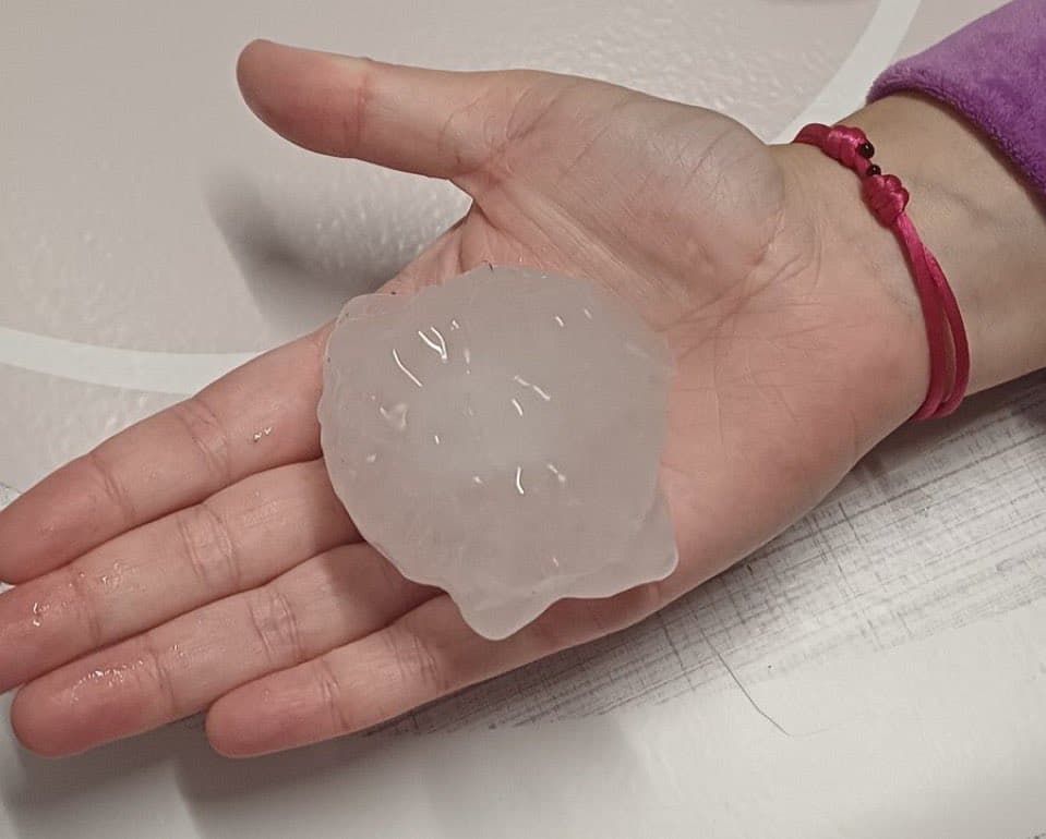 Grêlon de 7/8cm de diamètre tombés à Chandon dans la Loire dans l'après-midi du 1er juin 2025 – Photo via Twitter @MarcelbeaPires