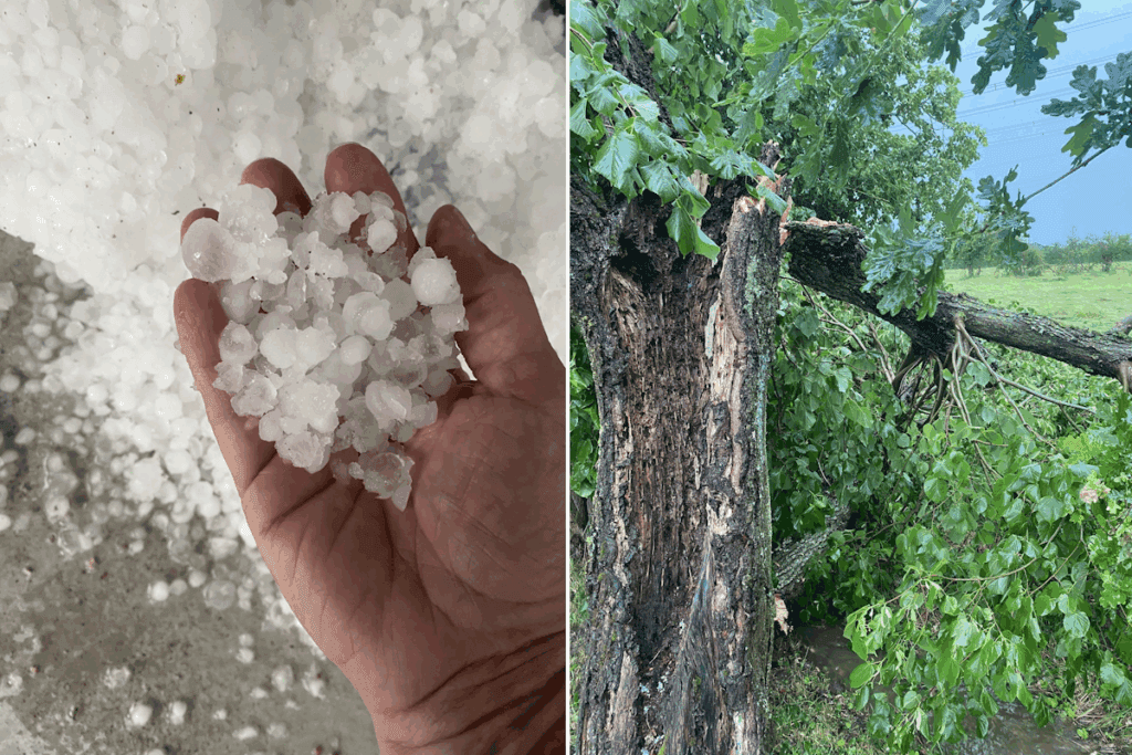 Grêle et dégâts venteux à Cressanges (03) ce samedi 31 mai 2025 – Photographies : Valérie Fasulo-Castioni