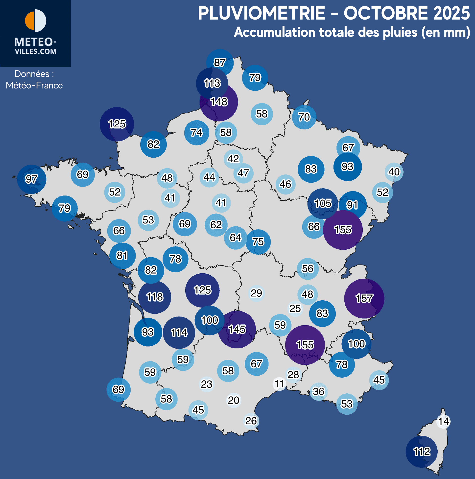 Comme à chaque début de mois, nous vous proposons un nouveau bilan climatologique. Place désormais au bilan cartographié d'OCTOBRE 2025 en termes de température, pluviométrie et ensoleillement sur un panel de 73 stations*. Les anomalies présentées sont calculées à partir des moyennes climatiques de la période de référence 1991-2020 sur l'ensemble des stations du panel.
