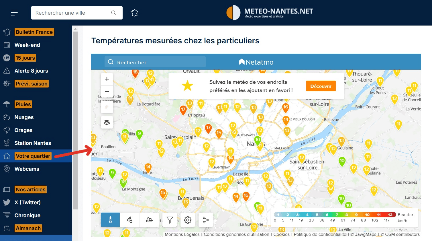 En cliquant sur "Votre quartier", vous accéderez enfin aux nombreuses stations météorologiques de particuliers autour de chez vous, pratique pour se faire une idée précise du temps à un instant T sans avoir à mettre le nez dehors.