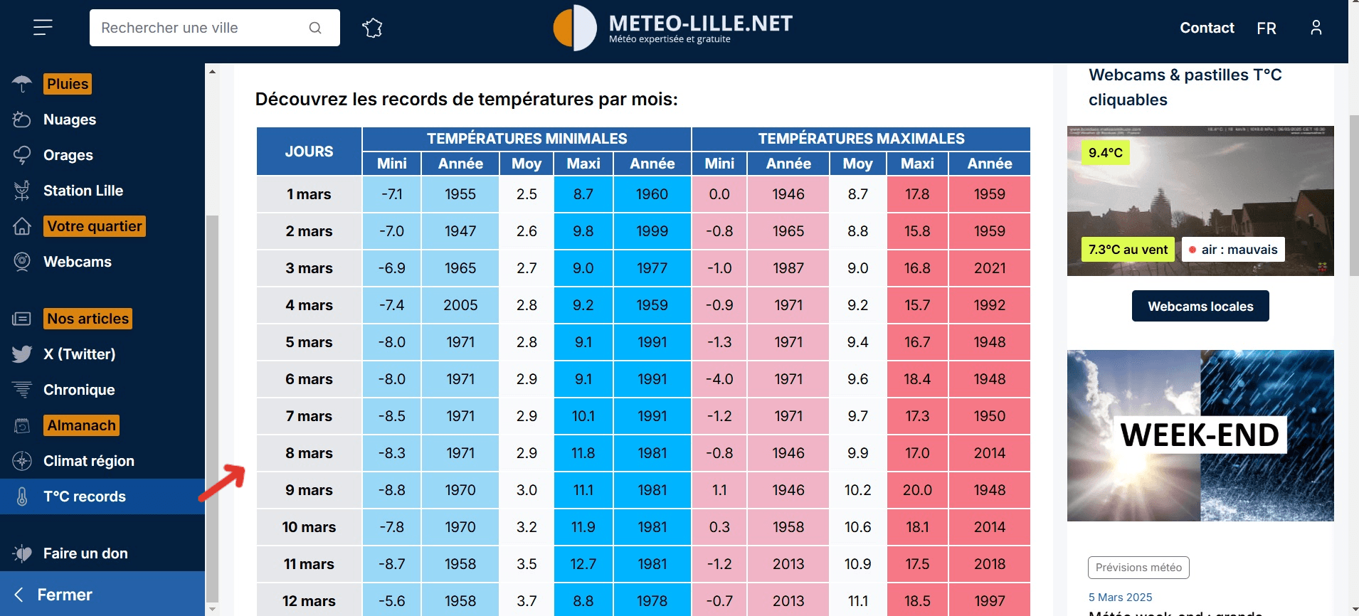 Enfin, vous pourrez facilement accéder grâce à ce nouveau sommaire au climat de votre région tout comme aux records de températures observés jusqu'ici, réactualisés tout au long de l'année par nos soins.