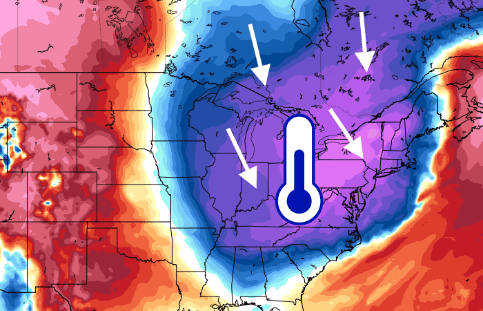 Cependant, cette vague de froid arrive déjà à son terme. La masse d'air polaire est en train de s'évacuer au dessus des eaux de l'Atlantique et va laisser place à une masse d'air particulièrement douce, en provenance de l'ouest des États-Unis. Dans les prochains jours, la température de la masse d'air vers 1500 mètres grimpera 10 à 15°C au dessus des moyennes saisonnières sur le nord-est des USA, soit une hausse de 20 à 30°C en quelques jours !