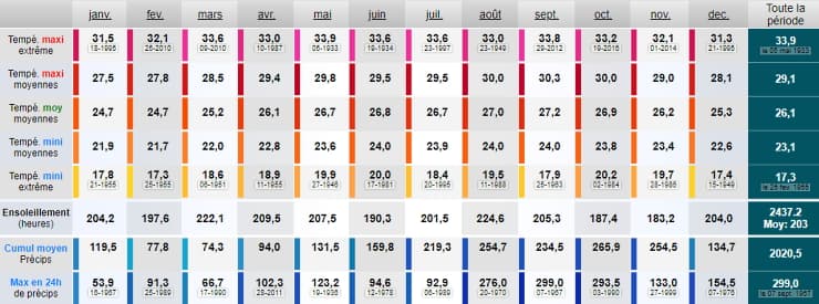 Tableau des normales climatiques à Fort-de-France (Martinique) - via Infoclimat