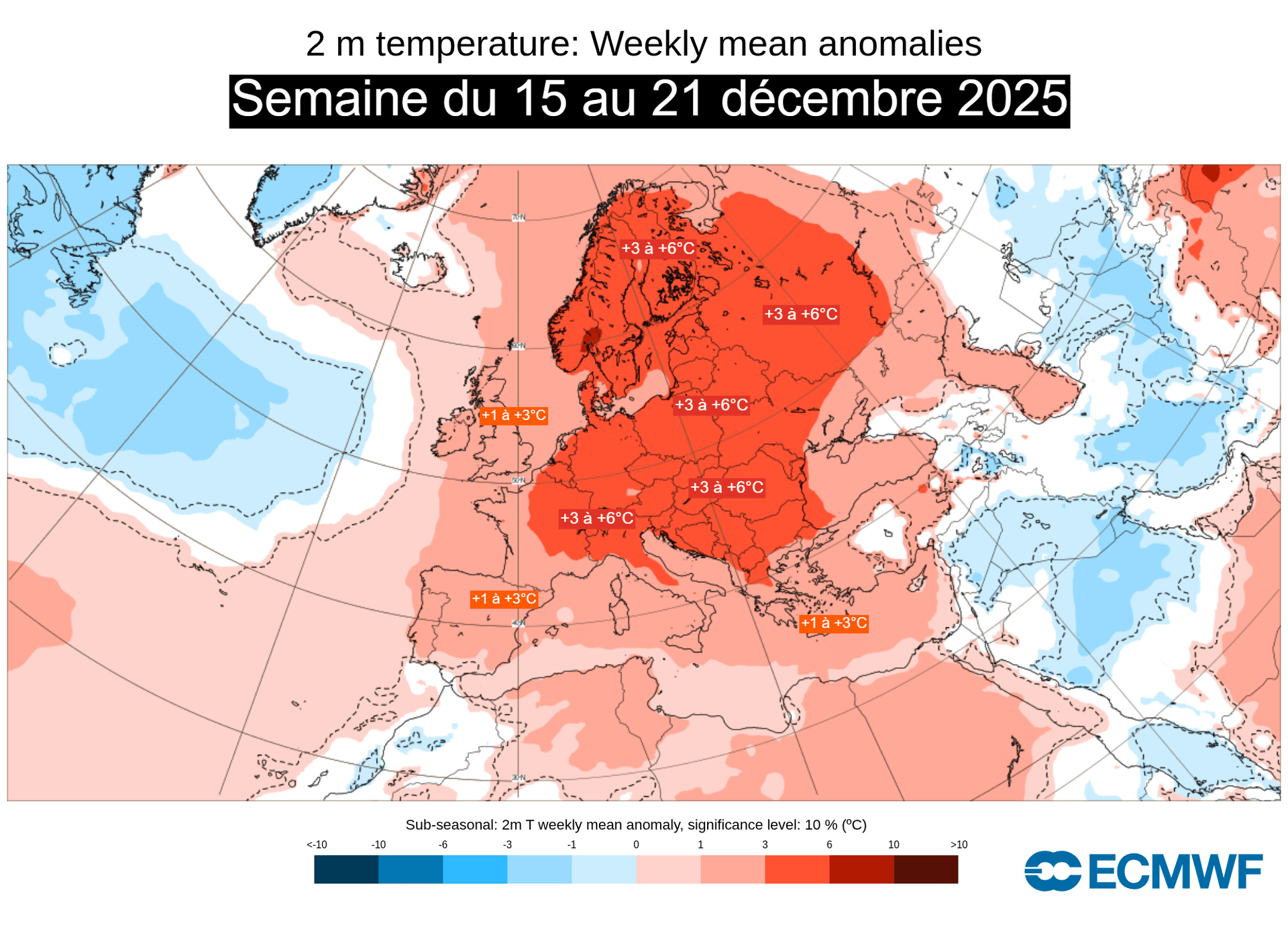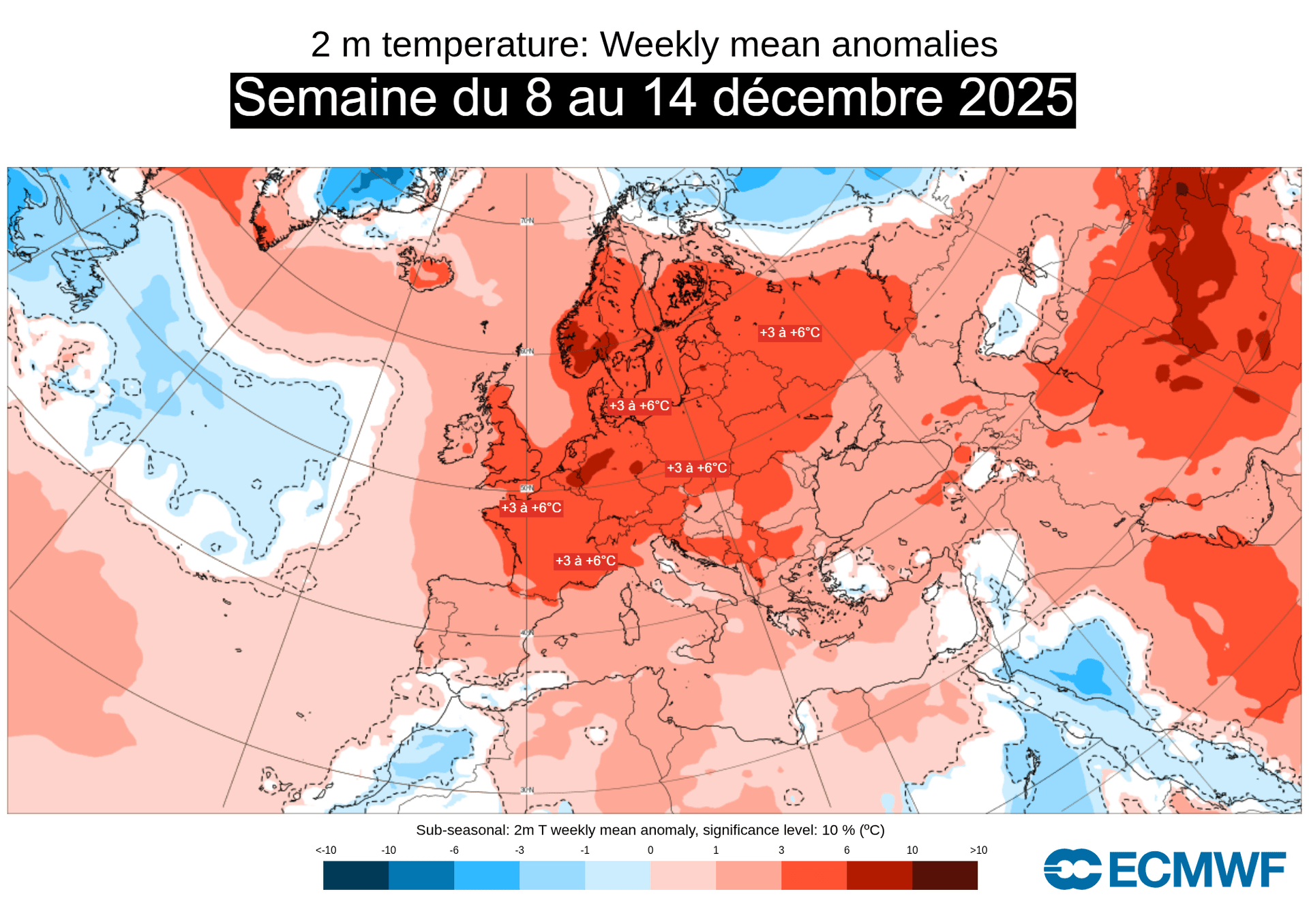 Anomalies de températures sur l'Europe pour la semaine du 8 au 14 décembre 2025 – ECMWF