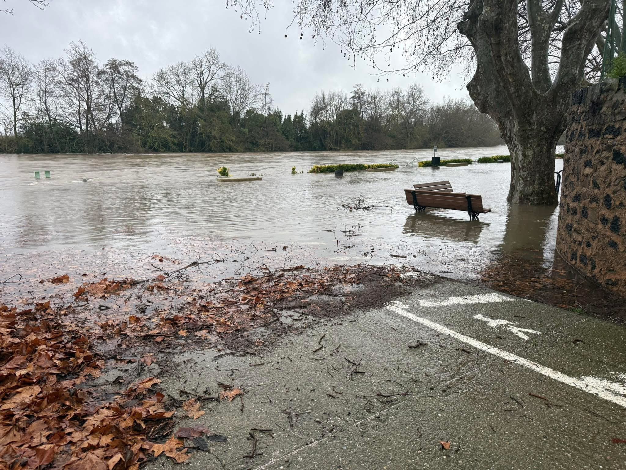 Le fleuve Hérault en crue ce week-end à Bessan - Photographie : Ville de Bessan