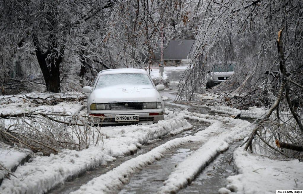 Couche de glace très importante et dégâts près de Vladivostok le 19 Novembre - via BBC Weather