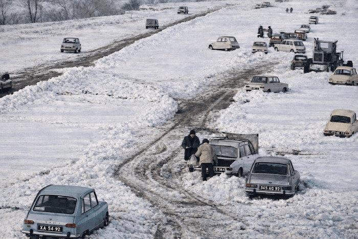 Le 29 décembre 1970, la pire tempête de neige depuis 1917 paralyse le nord des régions Méditerranéennes.  Alors que la neige recouvre déjà toute la moyenne vallée du Rhône, l’autoroute du soleil reste ouverte, piégeant 6000 voitures sur 53 km.  On frôle la catastrophe et on réalise vite que cette portion d’autoroute, ouverte depuis seulement 4 ans, manque cruellement d’un plan de secours pour une telle situation.