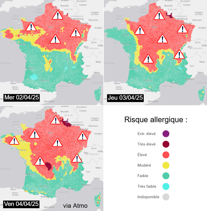 Risque allergique du mercredi 2 au vendredi 4 avril 2025 - atmo.fr
