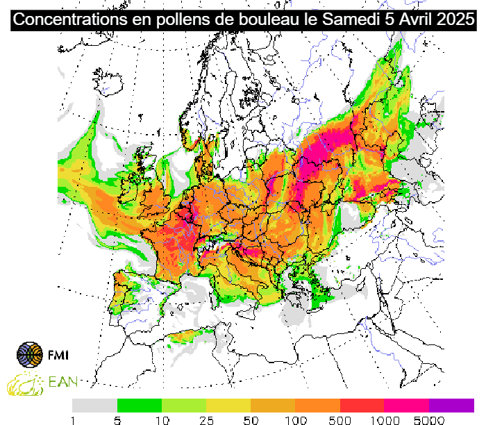 Concentrations en pollens de bouleau pour le samedi 5 avril 2025 - FMI