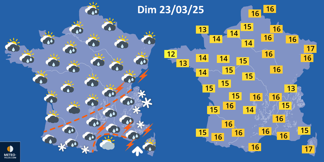 Prévisions météo et températures maximales pour le dimanche 23 mars 2025 - Météo Villes