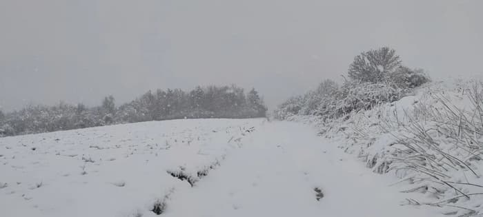 Abondantes chutes de neige près de Saint-Omer dans le Pas-de-Calais avec plus de 10-15cm au sol en fin de matinée du 1er avril 2022 - Photographie : @Land62100