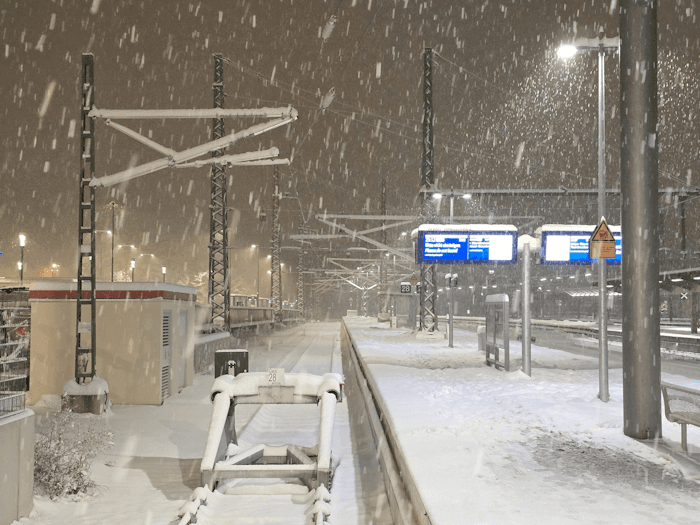 La gare d'Ulm (Allemagne) sous d'abondantes chutes de neige le lundi 26 janvier 2026 - photo Martiko Fusky