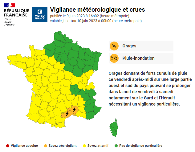 Carte de vigilance émise le 9 juin à 16h :