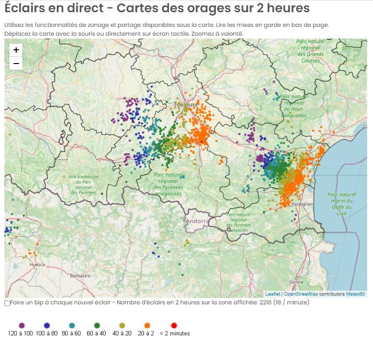 Importante activité électrique en fin de journée du 9 juin sur l'Occitanie au passage de puissants orages - Via Meteo60.fr