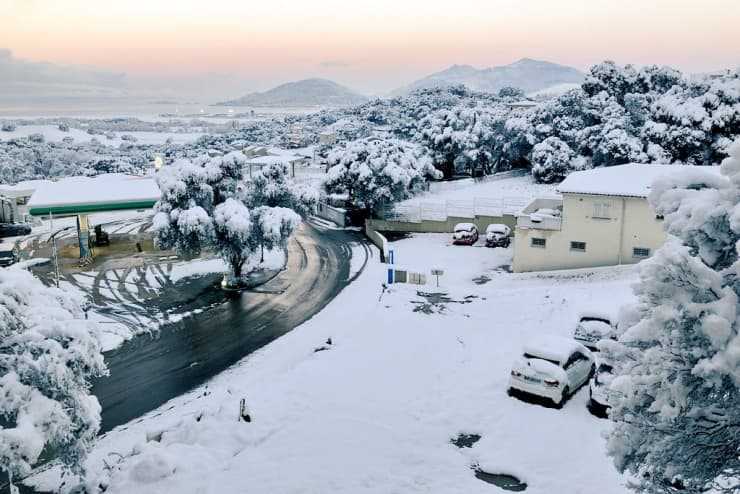 Alors que la fin février 2018 est glaciale sur l'ensemble de la France, l'air froid atteint le bassin méditerranéen où une forte instabilité se développe. Le 27 février 2018, la Corse est concernée par un épisode neigeux majeur qui s'étend aux plaines littorales (jusqu'aux plages). Il tombe une quinzaine de centimètres de neige sur Ajaccio et Bastia, offrant des paysages peu communs. Une belle preuve que même à l'ère du réchauffement, aucune région française n'est à l'abri d'un épisode neigeux d'ampleur.