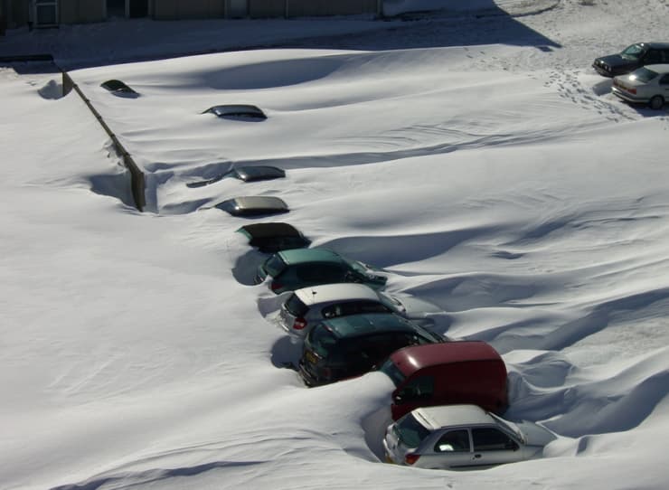 Voitures ensevelies à Gonneville (50) après une tempête historique le 13 mars 2013 - via Infoclimat