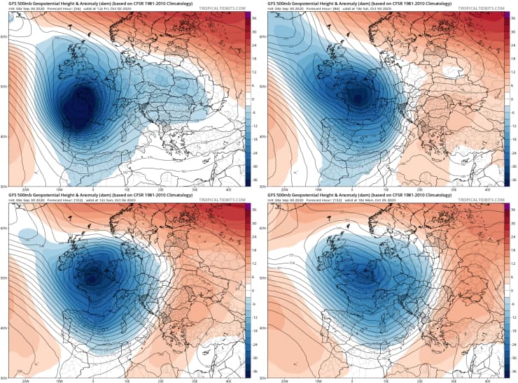 Anomalies de géopotentiel du 2 au 5 octobre 2020 - via tropicaltidbits.com