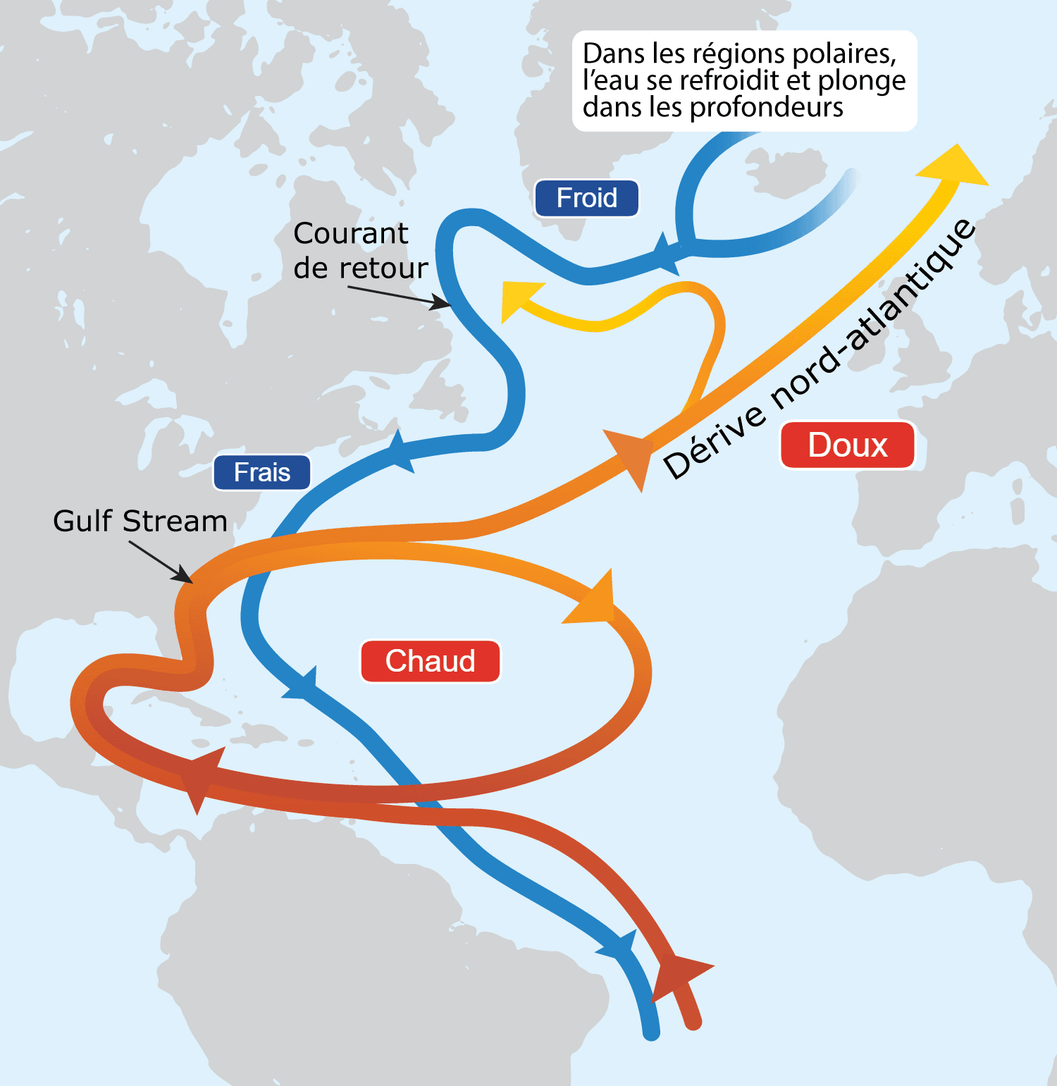 Schéma du fonctionnement du Gulf Stream sur l'Atlantique – HCBC