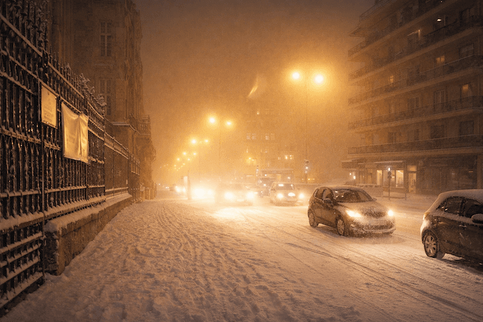 Amiens sous les plus fortes averses de neige de la soirée du 17 décembre 2010… (10 cm dans les rues !)