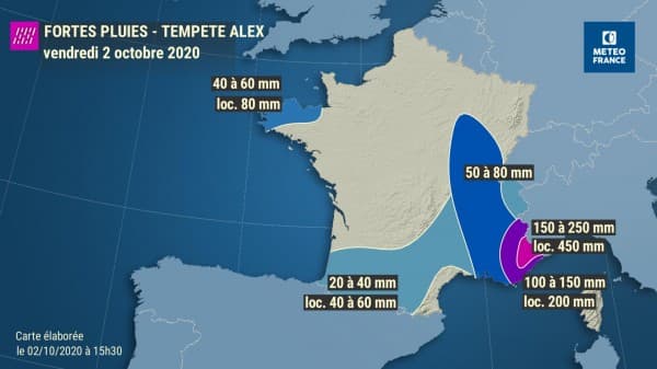 Cumul des précipitations sur la journée du 02 octobre 2020 - Météo-France via Gaetan Heymes