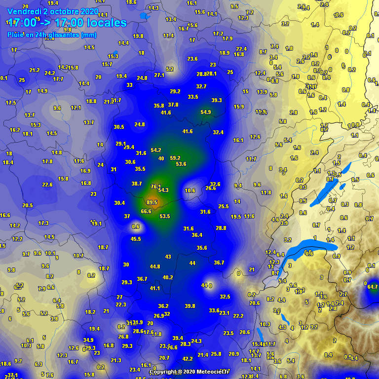 Cumuls de pluie parfois importants sur le Centre-st du pays en 24h ce Vendredi 02 Octobre - Via Météociel.fr