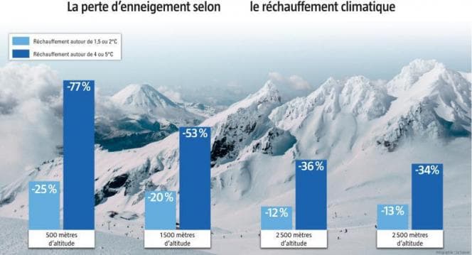 Perte d'enneigement sur les Alpes en fonction du réchauffement climatique – Via La Savoie – Le Messager