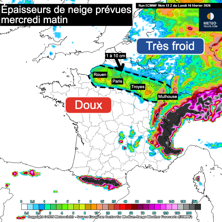 Nouvelle neige entre Rouen, Paris et Strasbourg pour mercredi ? 16/02/2026