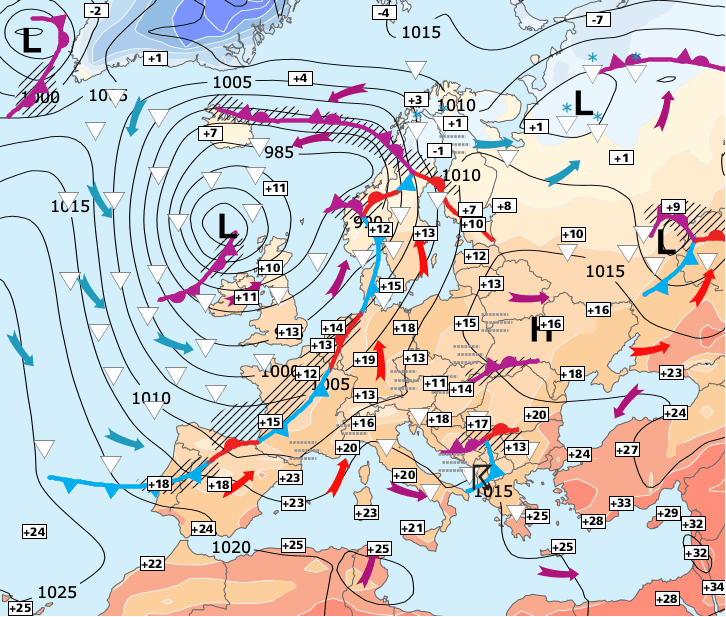+ En fin de semaine, ces hautes pressions se décaleront vers l’Europe centrale et dirigeront de l’air de plus en plus doux et de plus en plus sec sur la France, annonçant un week-end de la Toussaint très agréable !