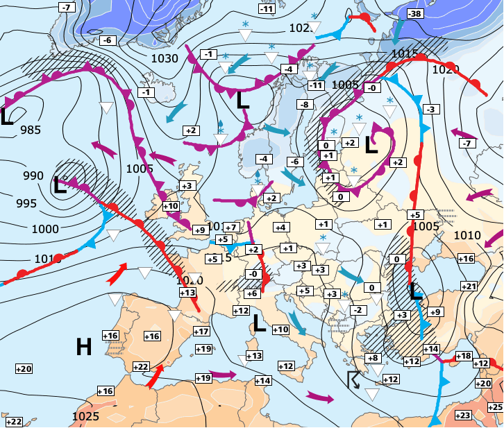 + La douceur actuelle (avalanches dans les Alpes) ne va pas durer car l'agitation que nous connaissons (pluie, vent, début de crue des cours d'eau) est liée à un contraste entre le froid polaire qui recouvre le Nord de l'Europe (notamment la Scandinavie) et la douceur Ibérique qui remonte sur la France - lire notre article complet sur les raisons de cette agitation ici >>>